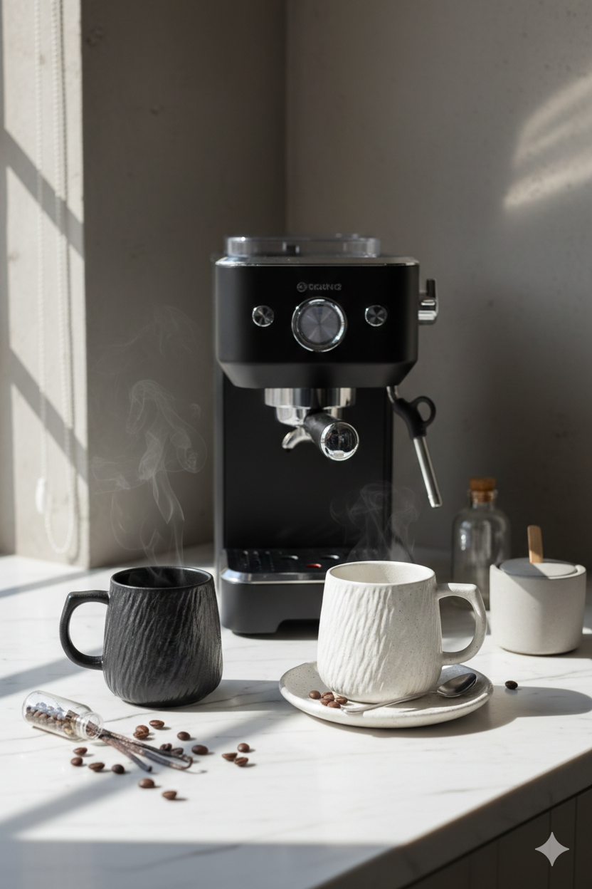 • Description: This striking set features a deep matte black finish with a unique vertical "bark" texture that provides both a sophisticated look and a comfortable grip. Crafted from high-density stoneware, these mugs are designed to keep your beverages at the perfect temperature while adding a modern, moody edge to your coffee station.